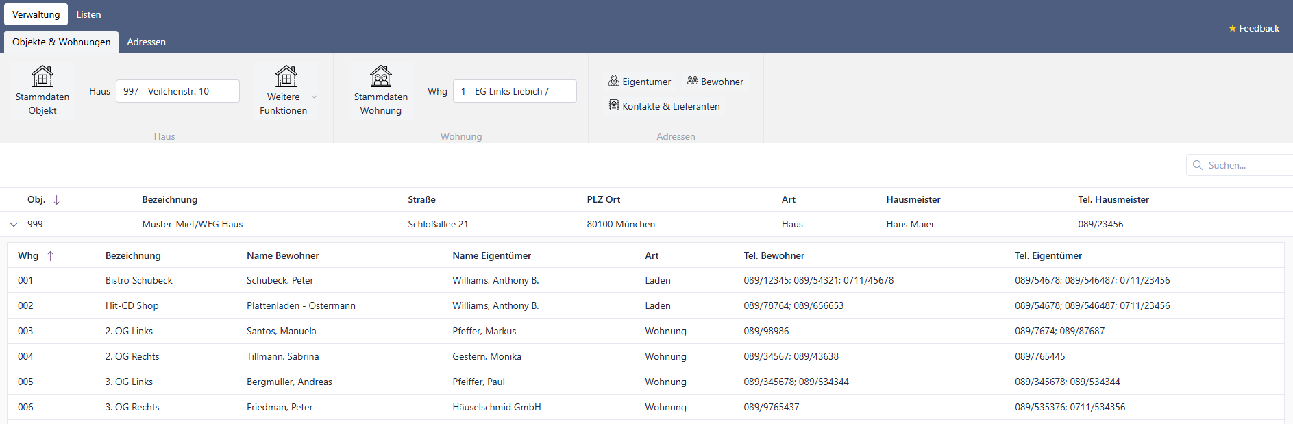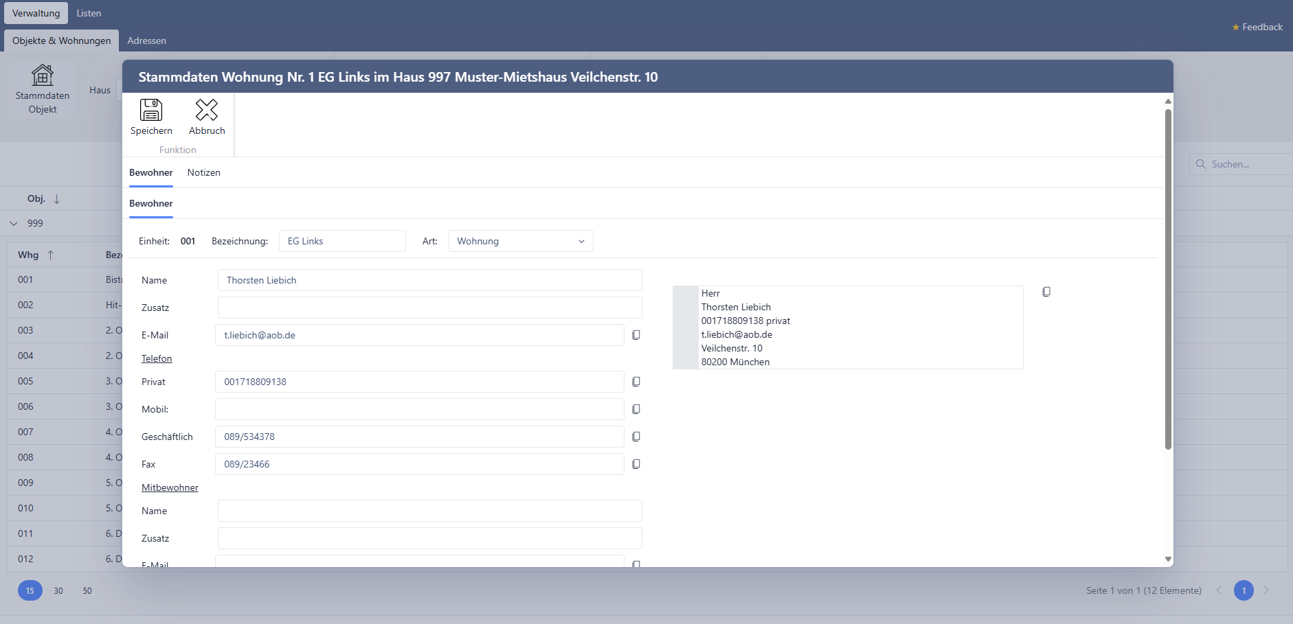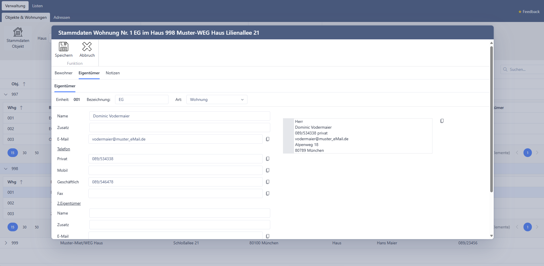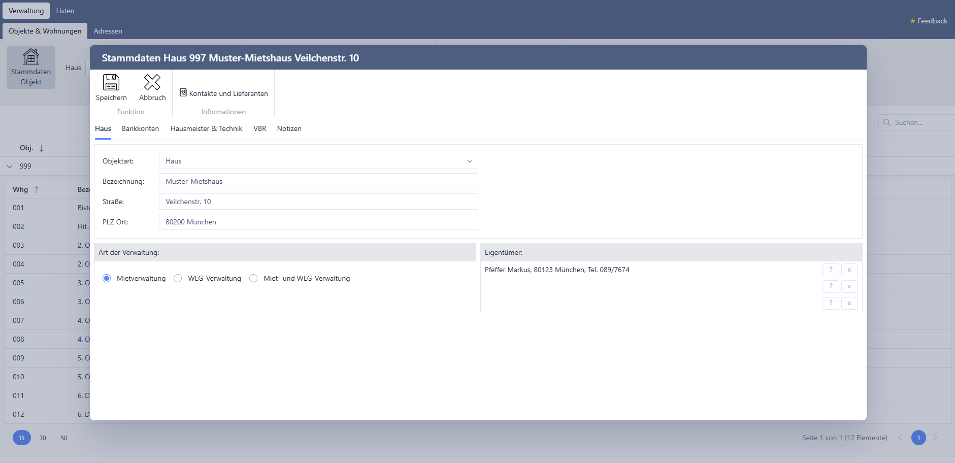 Stammdaten-Verwaltung in Verwaltung - Objekte und Wohnungen