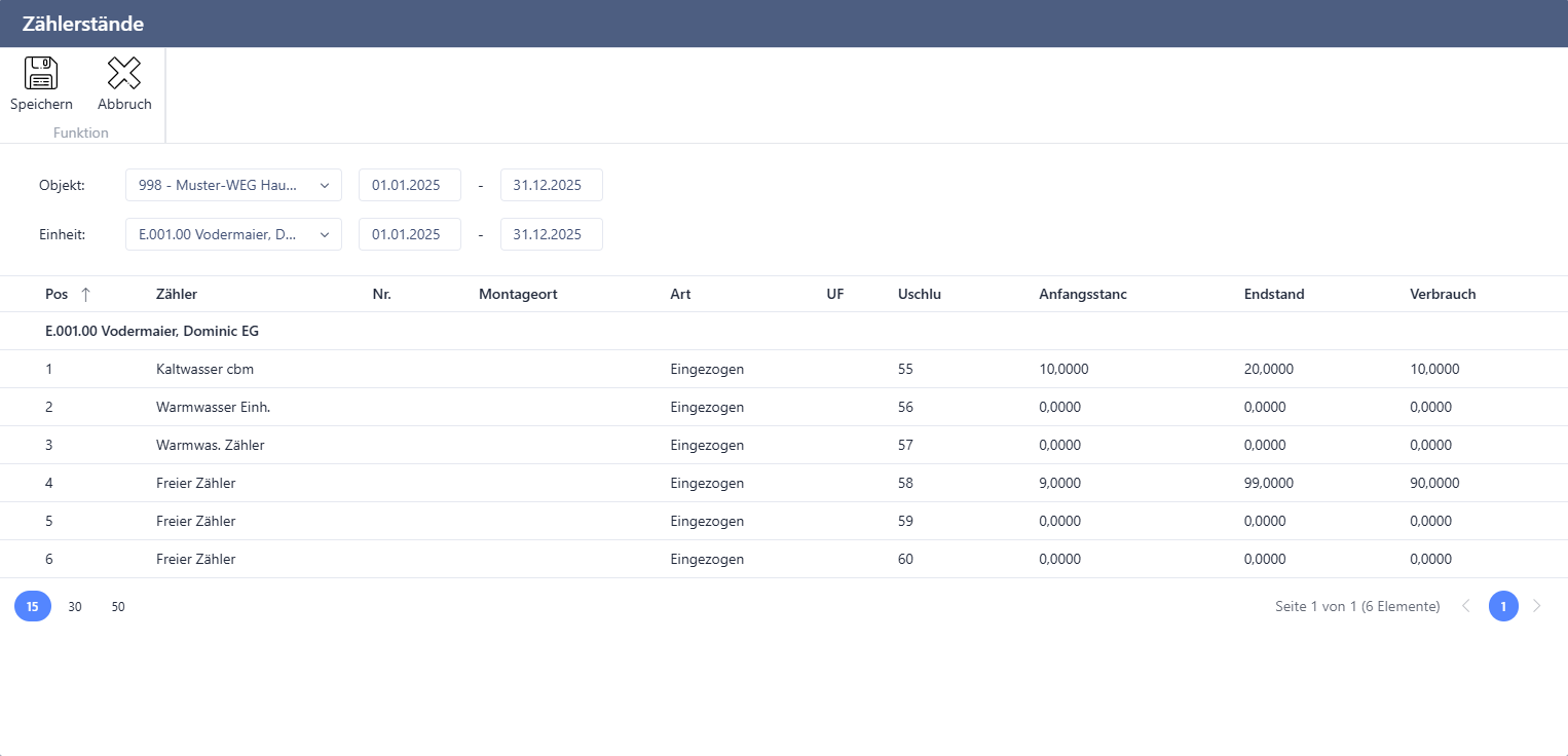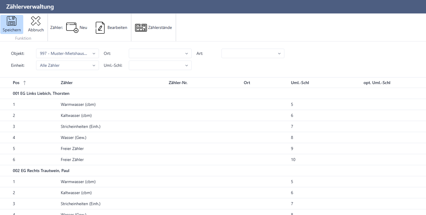Über die Funktion "Zählerverwaltung" können Sie Zähler anlegen und Zählerstände einsehen und eintragen: